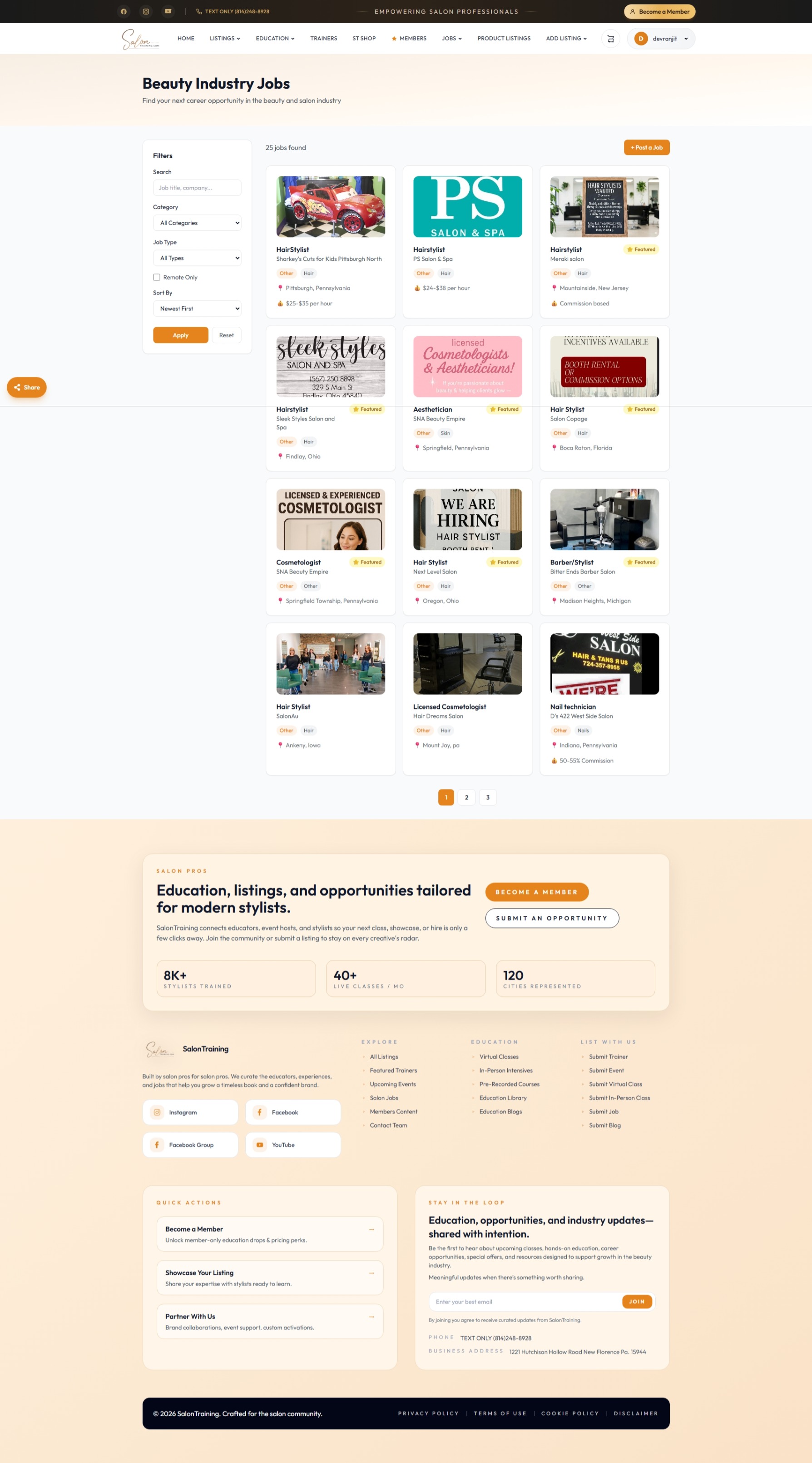 A scalable beauty education and professional network platform designed to help salon professionals find trainers, classes, jobs, and industry opportunities in one place.